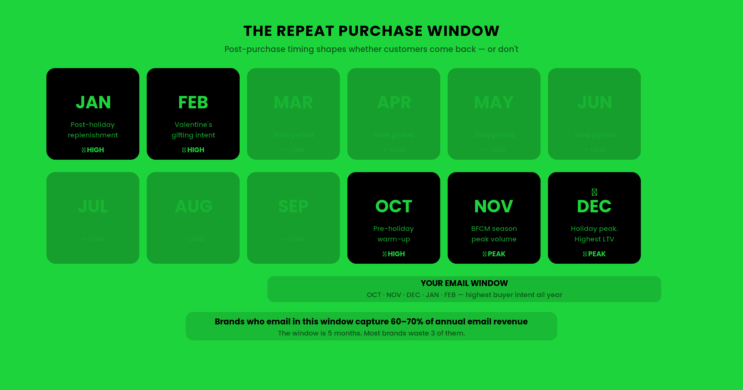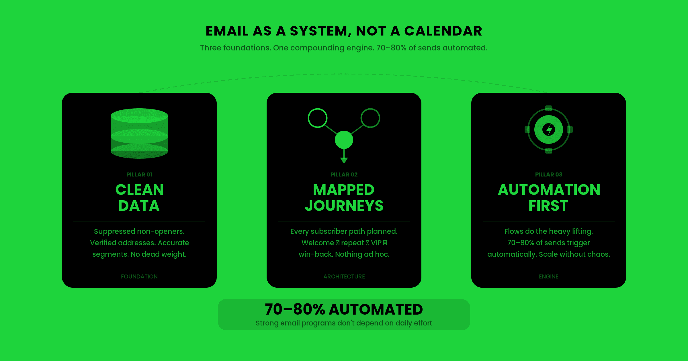 Start with four emails. Segment by at least two customer types. Measure repeat purchase rate at 90 days. That is the foundation.