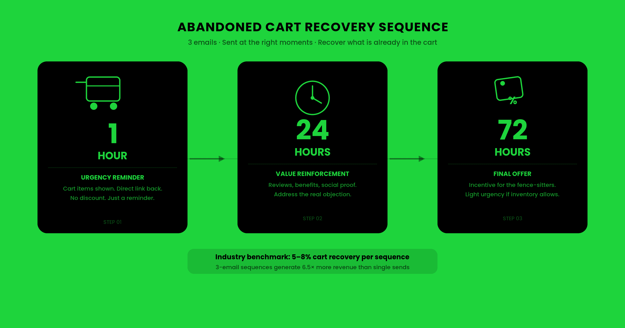 A single confirmation email leaves 100% of the retention potential on the table. If you do nothing else after reading this post, add at least one value-add email three days after purchase. That one addition alone can move your repeat purchase rate.