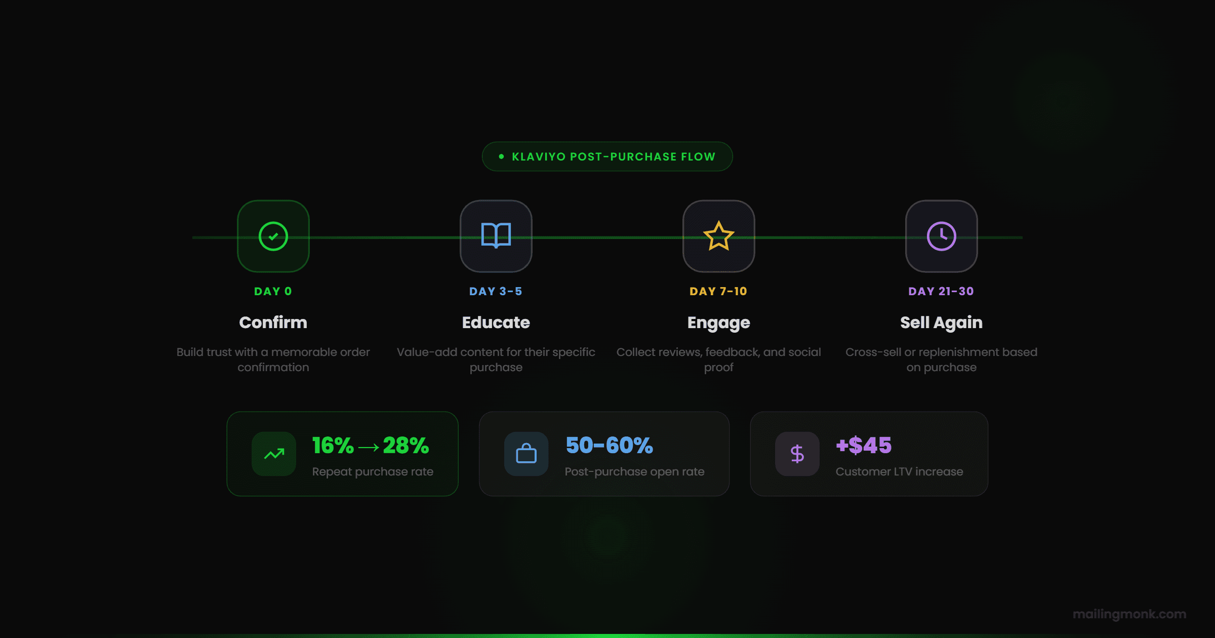 If you are running a Klaviyo account for a Denver outdoor brand or a Philadelphia DTC startup, the math is the same. Post-purchase is where you turn a transaction into a relationship.